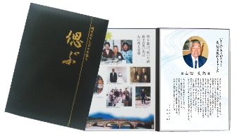 故人さまとの大切な想い出はいつまでも残しておきたいものです。当社の会葬パネルは、縮小して、長期保存に適したUVラミネートを施し、アルバム風に加工出来ます。葬儀後のアフターフォロー商品としてご活用ください。