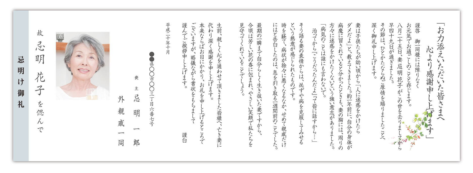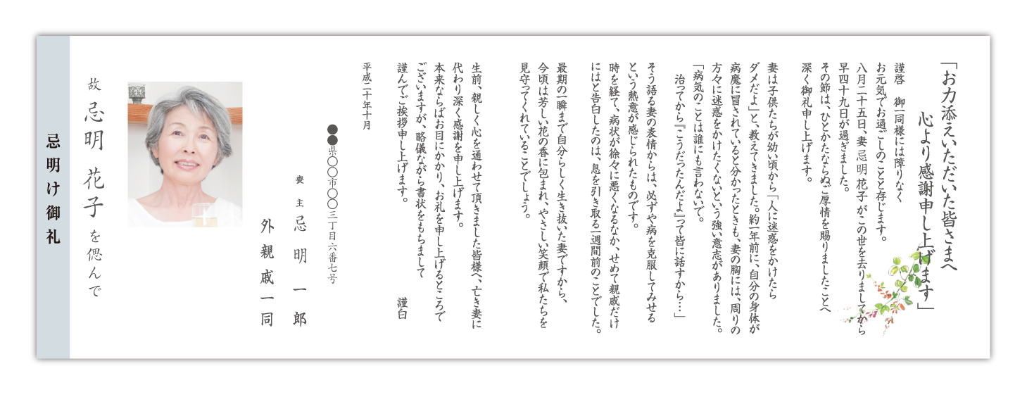 ご供花お礼状