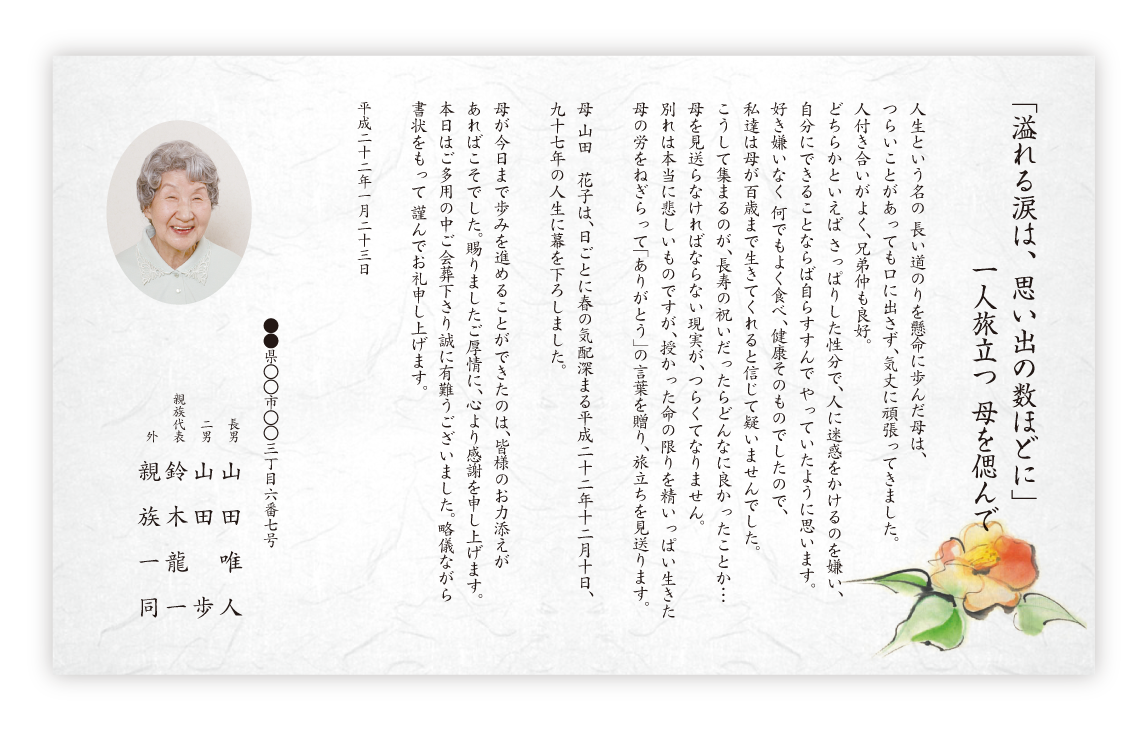 タイトルや文章は故人らしさを重点としたオリジナル文章です。