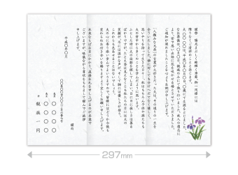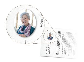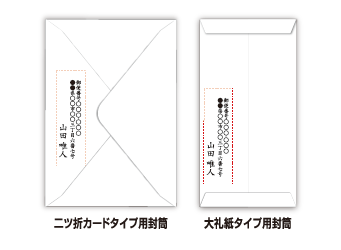 付属の封筒裏面には、差出人のご住所・お名前などを印刷いたします。喪家様は表面の宛名書きだけで済みます。