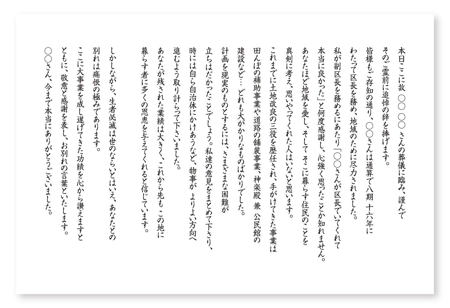 「喪主挨拶・弔辞」は葬儀の締め括りで行われますが、ご遺族は故人様を亡くし大変なストレスを抱きながら準備をなさっています。その負担を少しでも軽くし、忙しい中でも故人様を偲んでいただけたら、という想いから生まれた商品です。