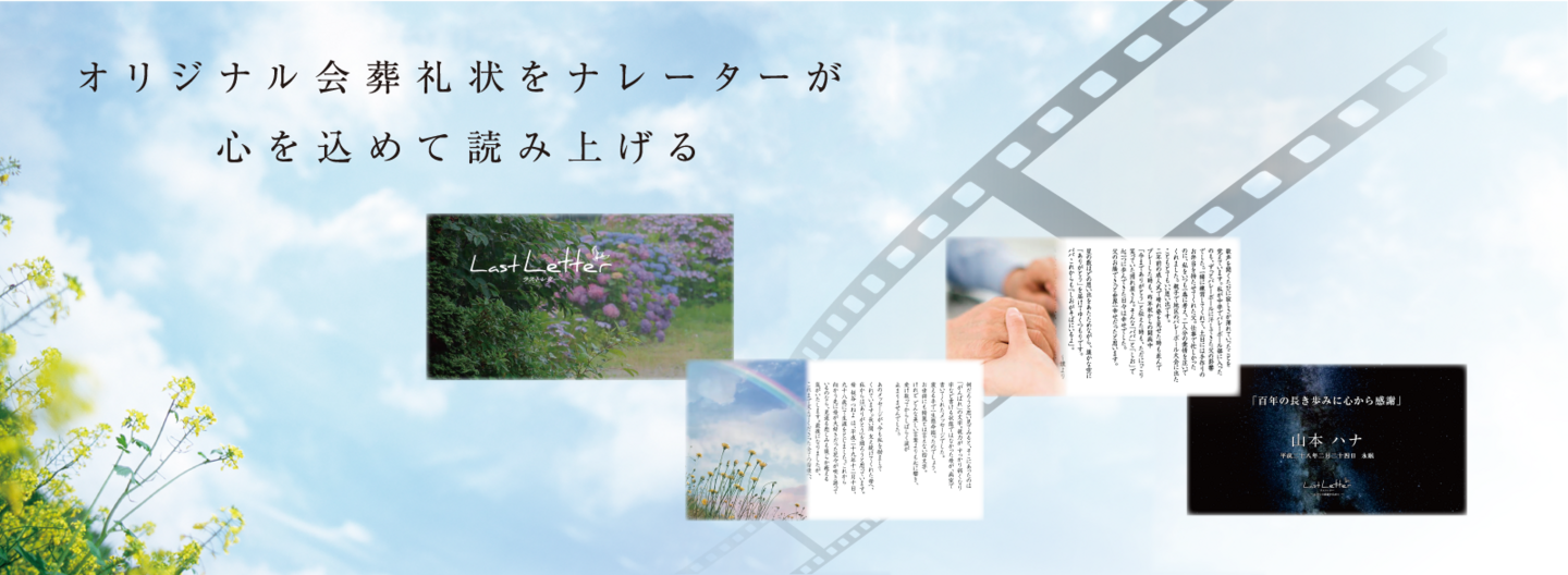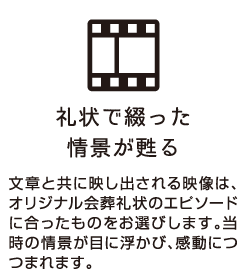映像とともに、オリジナル会葬礼状で築き上げた文章を