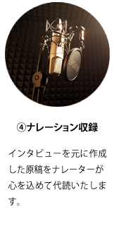 専属の経験豊富なナレーターが、心を込めてナレーションをさせていただきます。