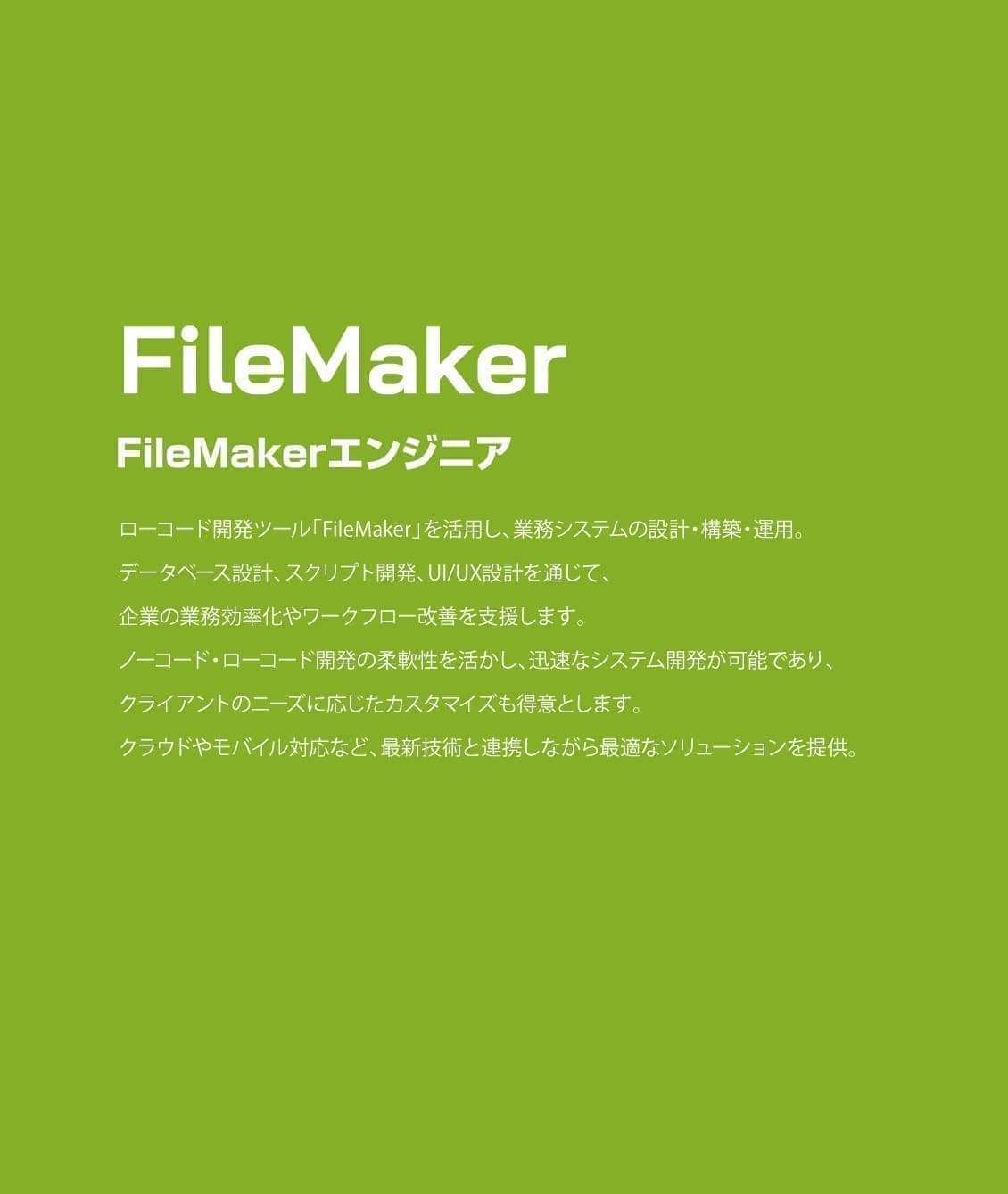 『FileMaker』を用いたシステムの設計経験をお持ちの方 |